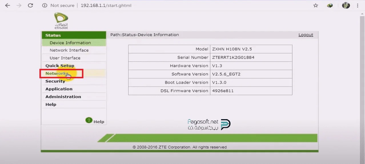 - سوف تظهر صفحة جديدة نقوم بالضغط على أختيار Network.