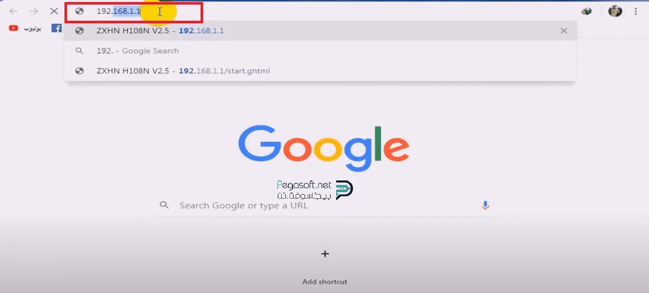 أو إحدى المتصفحات المتاحة. - نقوم بكتابه ” 192.168.1.1 ” في محرك البحث الخاص بالمتصفح.