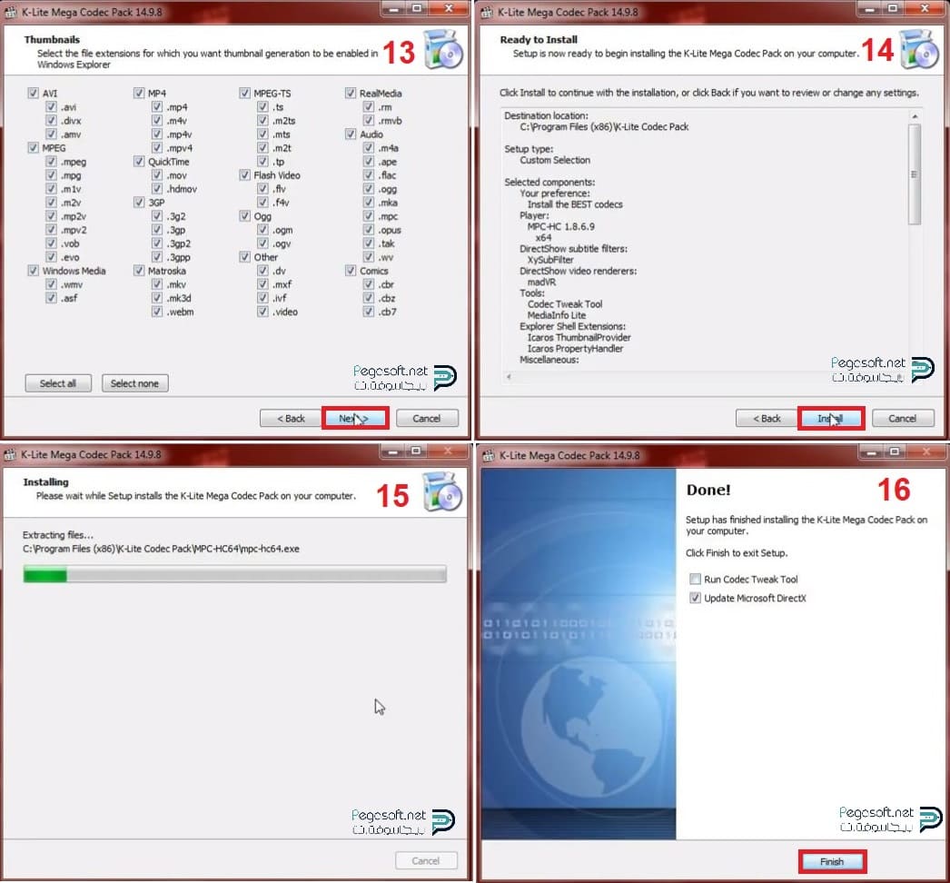 - 6- قم وضع علامه على جميع المربعات ثم الضغط على Next.