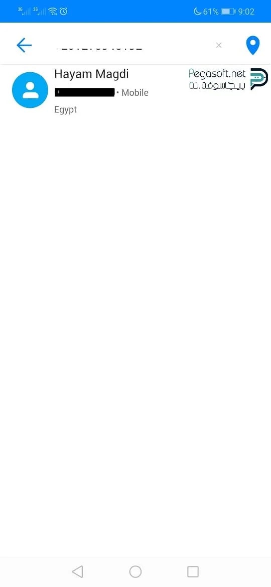 البحث والانتظار حتى تظهر نتائج البحث والتي تتضمن الأسم ورقم الهاتف الخاص به،