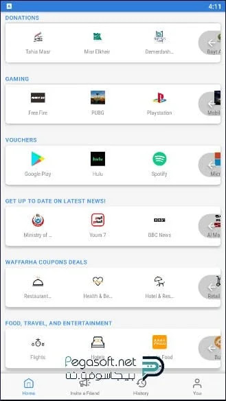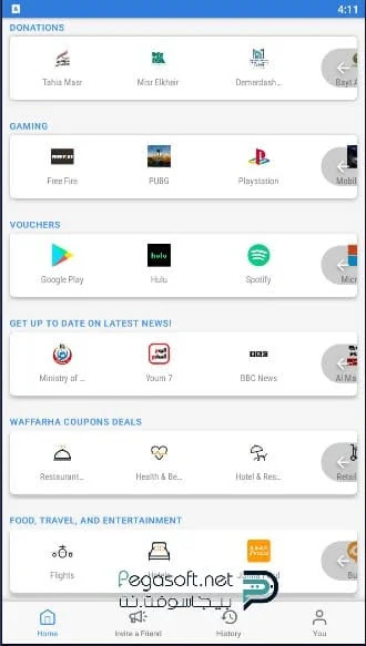هناك العديد من الكوبونات التي تتوفر عقب إستكمال أحد المعاملات الأخرى عن طريق هذا التطبيق كخدمة شحن الفواتير أو
