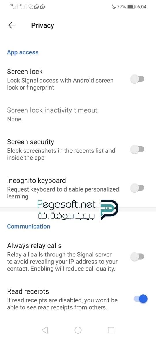 الرسائل فإنها تعامل كالرسائل العادية. - لا يطلب منك برنامج سيجنال ماسنجر تحديد موقعك أو أي شيء يخص بياناتك، وكل ما