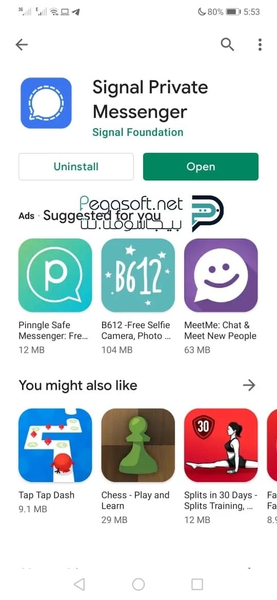 سيجنال ماسنجر. - بعد مرور عدة دقائق ستظهر لك عدة مواقع اضغط على موقع يمكنك من خلاله تحميل التطبيق وأضغط عليه.