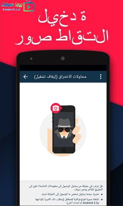 - يوفر للمستخدم الحماية التامة للصور وللفيديوهات على الهاتف