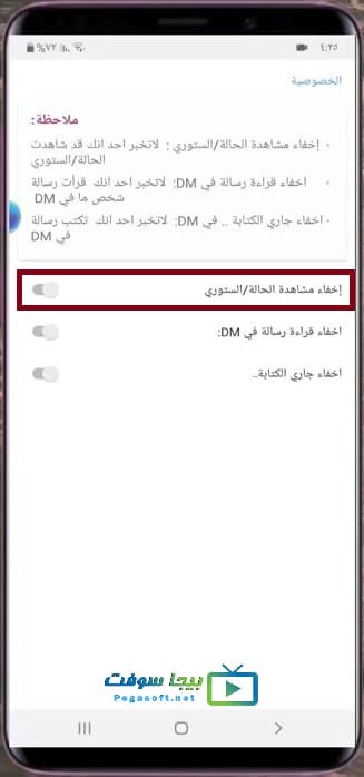 - اخفاء مشاهدة القصص: تستطيع أن تقوم بتفعيل تخصيص ميزة مشاهدة القصص وبهذه الطريقة لن يتمكن أياً من أصدقائك بمعرفة أنك قمت بمشاهدة القصة الخاصة به وتظل أنت محتفظ بميزة معرفة من شاهد قصصك.