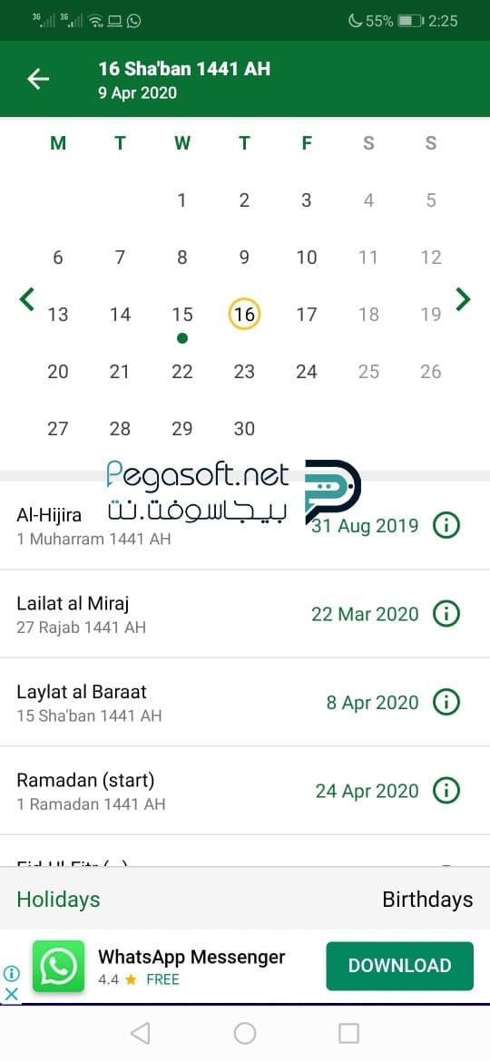 - يتيح لك التنبيه لقرب مناسبة دينية أو أعياد.