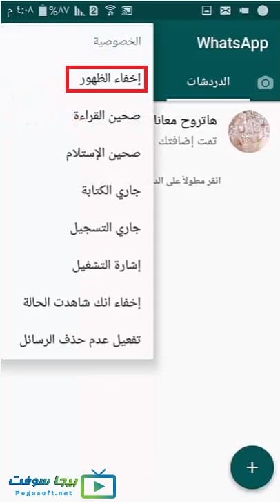 5. هل يمكنني إخفاء كلمة (متصل الآن) من خلال واتساب الأحمر؟