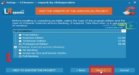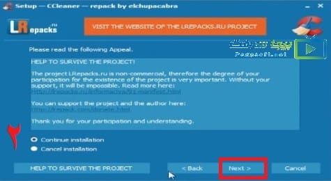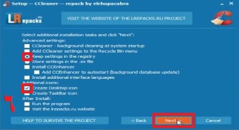 - 6- قم بتحديد هذه العلامات مثل الصورة ثم قم بالضغط على Next أو التالي ثم إنتظر حتى يتم تثبيت وتنزيل برنامج CCleaner على الجهاز.