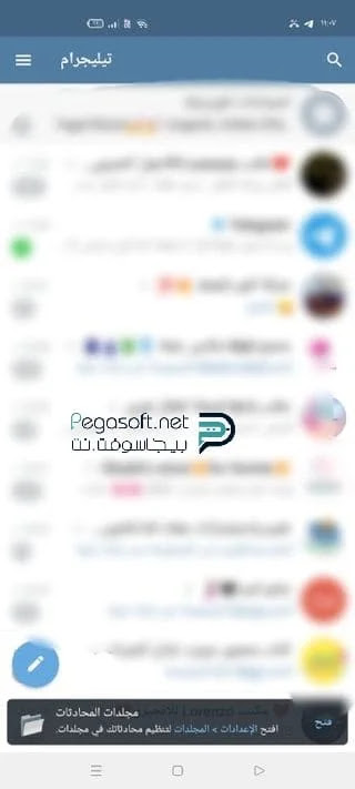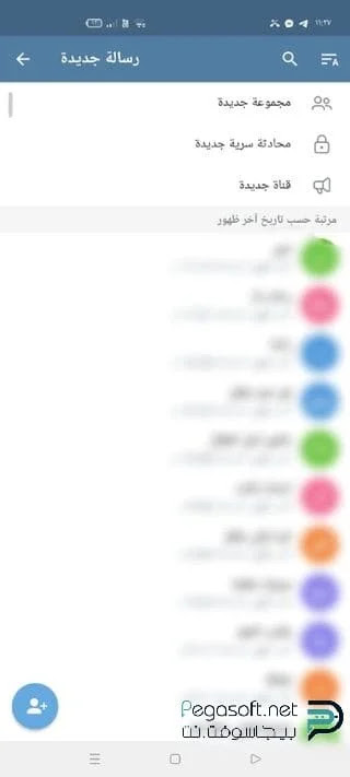 الذين تريدون التواصل معهم بسهولة ويسر. - كما يوجد الزر العائم أسفل الصفحة الرئيسية لإنشاء المجموعات الجديدة والقنوات