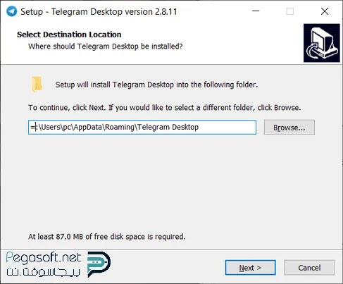 - ثانيًا: سوف تظهر صفحة أخرى لأختيار مكان تنصيب التطبيق قم بالضغط على next، ثم