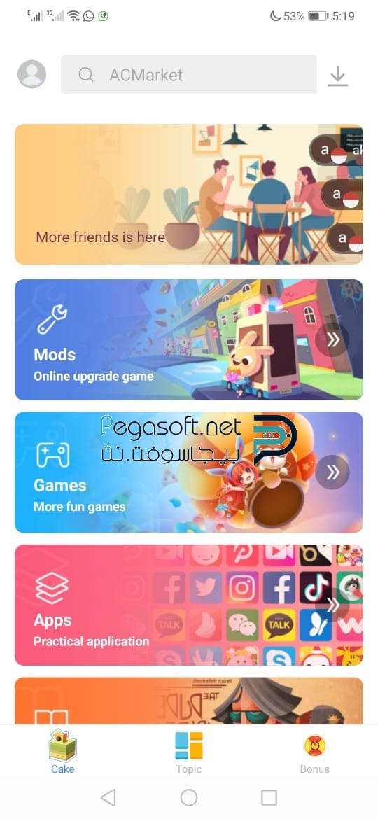 - يوفر إمكانية مشاركة التطبيقات مع الآخرين بسهولة نظرًا لأمكانياته التحميل لهذه التطبيقات بصيغة Apk.