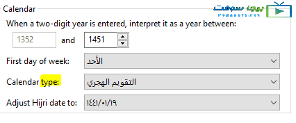 - من داخل تبويب Calendar type، نقوم باختيار التاريخ الهجري.