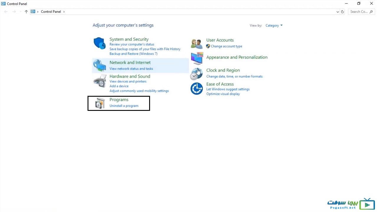 - من control panel نختار programs تنبثق قائمة البرامج.