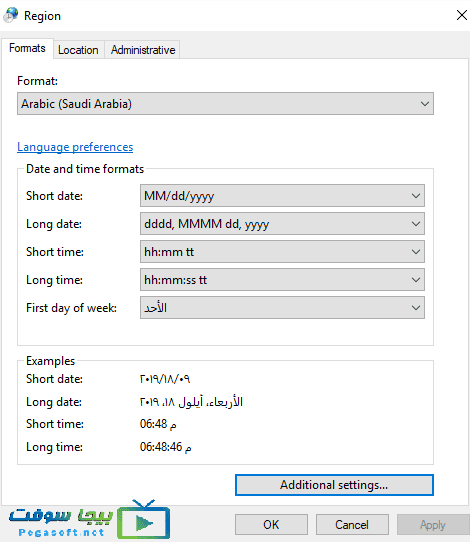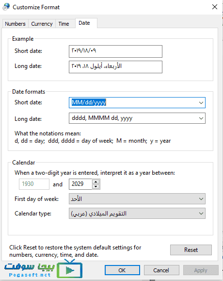 - 10- وبعدها نضغط على Apply وبعدها OK, ومن ثم نقوم بضبط التاريخ والوقت على التوقيت الهجري.