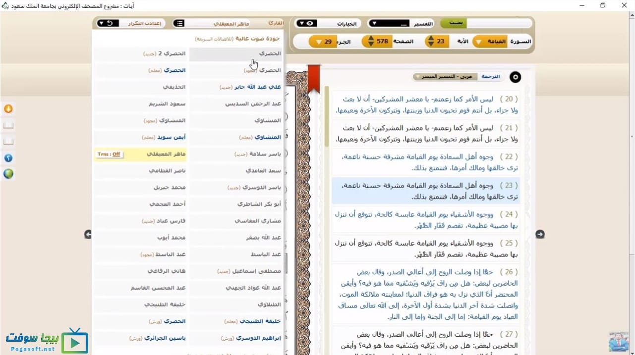 - يدعم الاستماع إلى القرءان الكريم بصوت كبار القراء وأشهرهم:- يساعدك البرنامج في تعلم قراءة القرآن بالشكل الصحيح وبالقراءة المناسبة لك من خلال الاستماع له بالقراءة الصحيحة بصوت كبار ومشاهير القراء، مما يتيح لك ميزة الاختيار للقارئ الذي تفضل الأستماع لصوته.