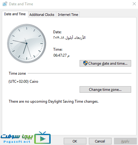 - ثم ننقر فوق كلمة Apply، ثم OK، ثم نبدأ في ضبط الوقت والتاريخ بالتاريخ الهجري.