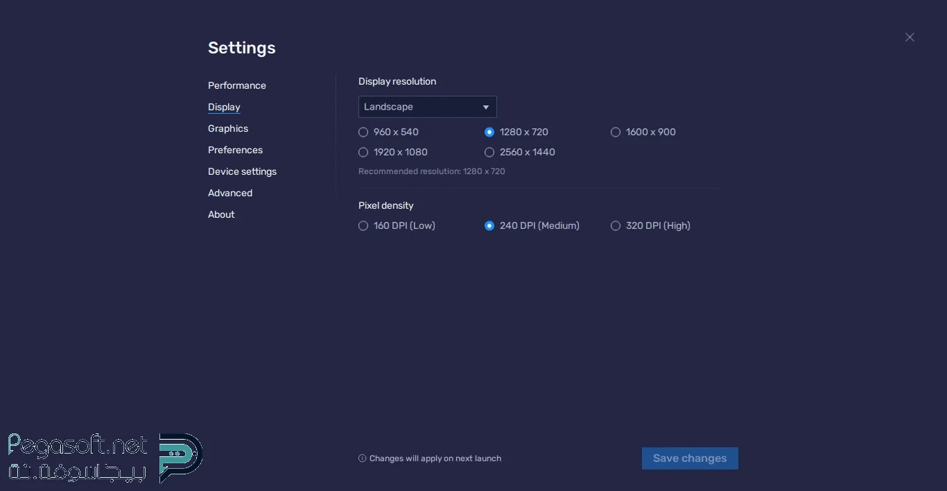 الاعدادات كما تتناسب مع متطلبات البرنامج وكما تتناسب مع الجهاز الخاص بك.