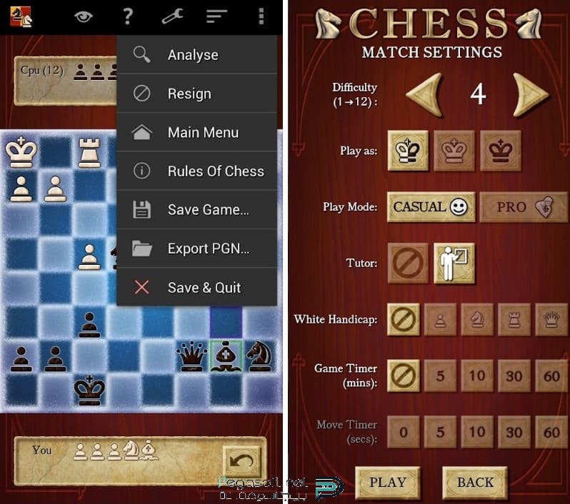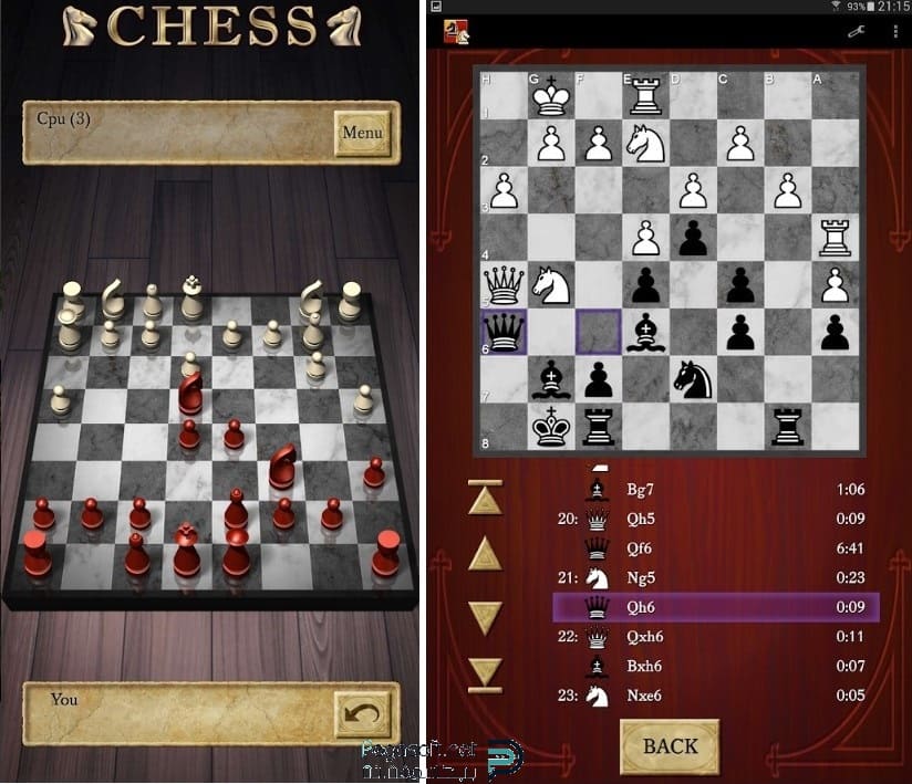 - لعبة Chess كما ذكرنا من الألعاب القديمة التي عرفها الأنسان، وبسبب الشهرة الواسعة التي تتمتع بها هذه اللعبة، تم إبتكار هذه اللعبة الإلكترونية التي تحاكي اللعبة الأصلية مع العديد من المميزات الرائعة التي تجعلك تشعر وكأنك في مباراة حقيقية وليس لعبة إلكترونية.