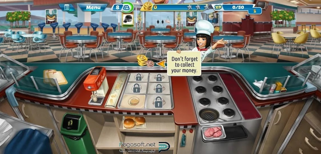 أخرى للمطبخ بهذا المال. - اللعبة مكونة من عدة مراحل وفي البداية ستكون المراحل بسيطة وسهلة حتى تعتاد