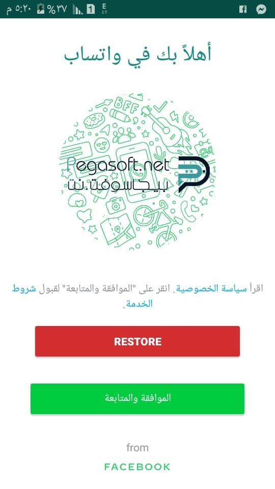 - الخيار الأول وهو خيار restore ومن خلال هذا الخيار يمكنك إختياره في حال إذا كنت تملك حساب مسبق على التطبيق من قبل.