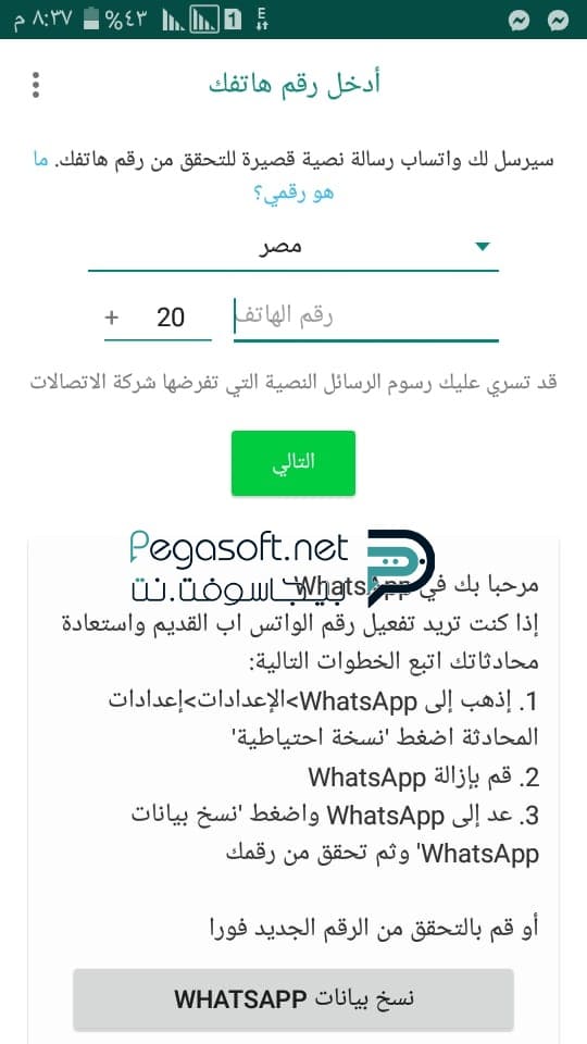 - ثم تقوم بتسجيل رقم الهاتف الذي تريد التسجيل به على واتس اب.