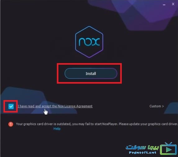 - 5- نتظر حتى يتم التحميل والتنصيب لبرنامج نوكس بلاير.