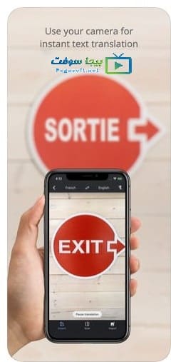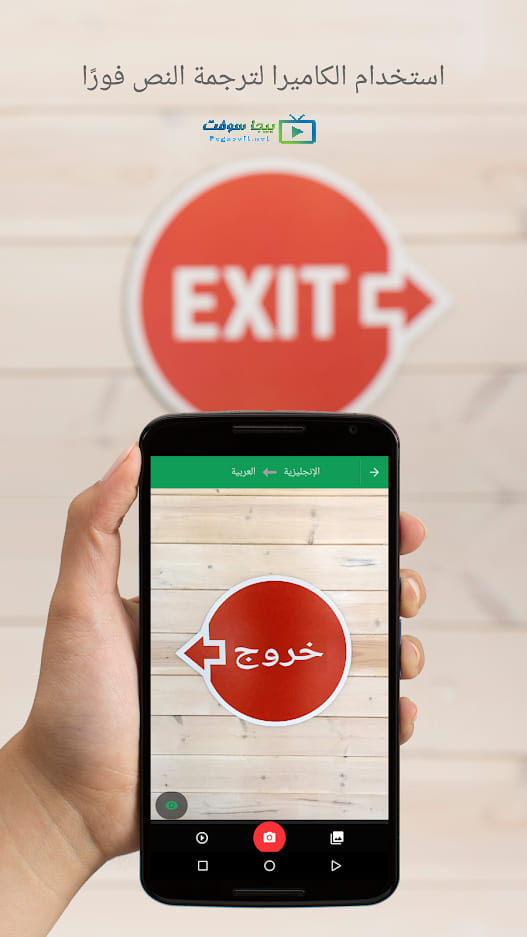 - الترجمة الكاميرا:- يمكن ترجمة الصور عن طريق الكاميرا بالتصوير وسوف يقوم البرنامج بترجمة الصور عن طريق التصوير بالكامير الجوال.