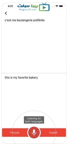 - يمكن للتطبيق الترجمة الصوتية حيث أن يمكنك الضغط على زر الميكروفون وتسجيل الجملة التي ترغب في ترجمتها.