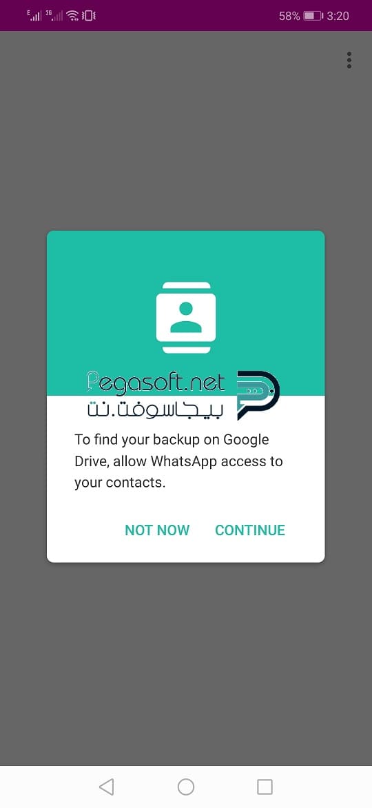 - سوف تظهر بعد ذلك صفحة جديدة يتوافر فيها إمكانية أستعادة الرسائل القديمة الخاصة برقمك لو كنت تستخدم الواتساب من قبل فيمكن من خلالها الضغط على هذا الإختيار لإعادة هذه الرسائل مرة أخرى وإن لم تكن تريدها اضغط على إلغاء.
