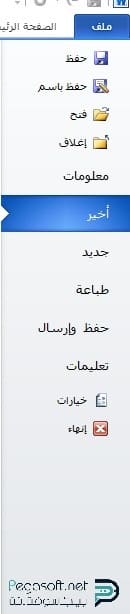 - ملف: ويمكن من خلاله حفظ الملف أو إغلاقه أو إجراء تدقيق إملائي للملف من قائمة الخيارات.