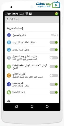 - قائمة الضبط : والتي من خلالها يمكنك التحكم بكافة التطبيقات، وتغيير إعدادات اللغة وحذف أي برنامج فهي قائمة تمنحك التحكم الكامل لمتجر موبو ماركت، لذلك تعتبر أهم قوائم المتجر.