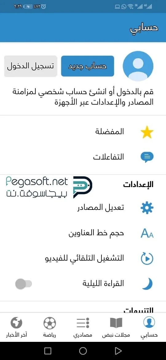 قسم مجالات نبض، وهذا القسم يقدم الأخبار من مجالات عديدة. - تستطيع أن تقوم بإنشاء حساب شخصي، حتى تزامن الإعدادات والمصادر، من خلال