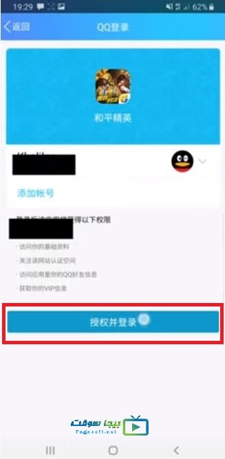 - 14- بعد الضغط على الخيار الأزرق سوف يأخذنا تلقائيًا إلى تطبيق QQ والذيمن خلاله يتم الدخول نقوم بالضغط على الزر الأزرق.