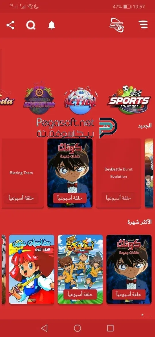 • يقوم البرنامج بإضافة كل ما هو جديد من أعمال كرتونية والحلقات الجديدة بشكل مستمر.