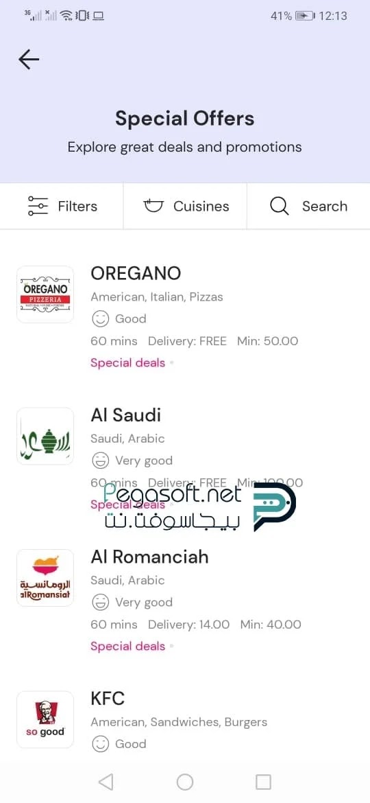 - يوفر التطبيق قائمة خاصة بأحدث عروض المطاعم والعروض على الوجبات المختلفة.