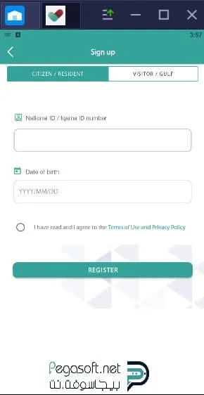 رقم الأي دي ثم تاريخ الميلاد وقم بالموافقة على الشروط ثم إضغط Register.