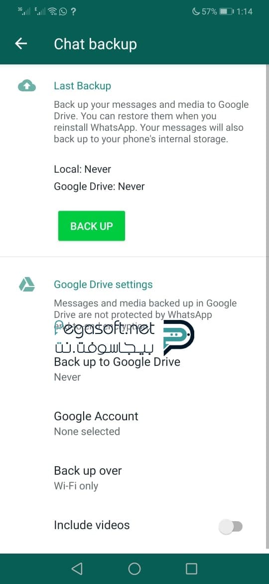 - الدخول الى إعدادات التطبيق ثم الضغط على نسخ أحتياطي ومنه نضغط على نسخ أحتياطي البيانات.