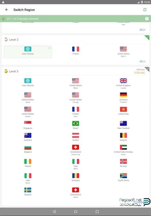 - ثم تقوم بالاختيار بين عدد من الخطط والسيرفرات بسهولة ويسر وتختار الدولة التي تريدها.
