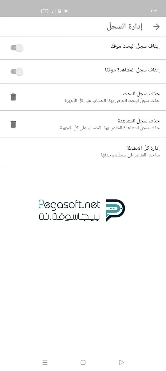 الفيديوهات يمكنك إيقافه أو تفعيله أيضًا، تستطيع بكل سهولة أن تقوم بحذف سجل