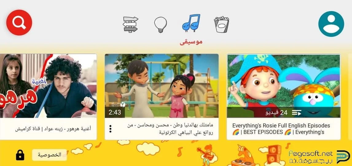 ستلاحظ ظهور مقاطع الفيديوهات الموسيقية والتي تتناسب مع كافة الأطفال.