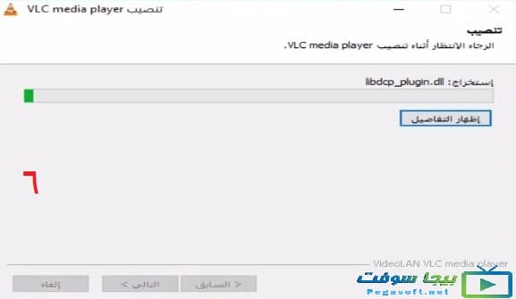 - 6- إنتظر حتى يتم تثبيت برنامج vlc media player على الكمبيوتر أو اللاب توب.