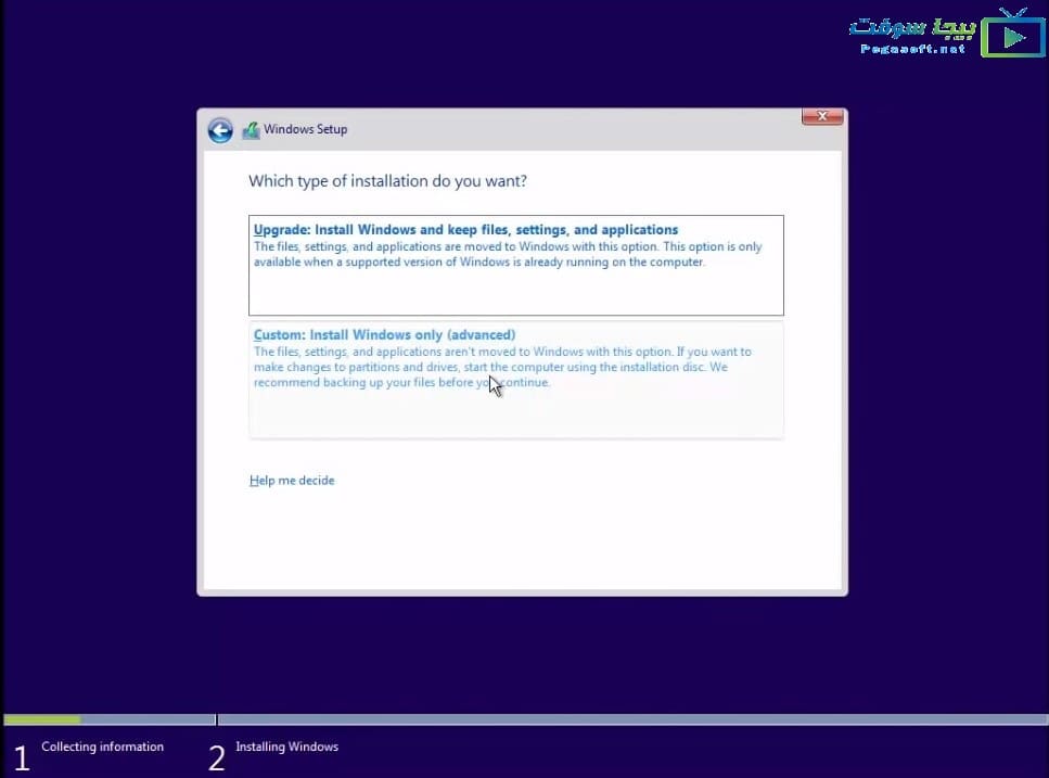 - سوف تظهر رسالة من شأنها أن يختار المستخدم بين تحديث نسخة الويندوز المثبتة، أم تحميل النسخة ككل.